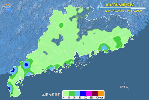 具体预报:10-11日,粤西、珠三角沿海市县多云,有分散(雷)阵雨,局部暴雨,其余市县多云,局部有(雷)阵雨。最高气温:中北部市县34℃~36℃,其余市县31℃~33℃。