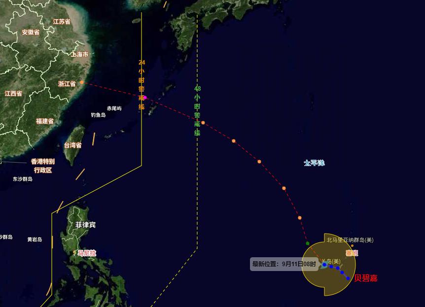 预计,“贝碧嘉”将以每小时20-25公里的速度向西北方向移动,强度逐渐增强,趋向我国东海海面。这个中秋节假期