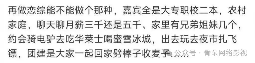 当大家都在呼唤二本恋综到来的时候,其实是在表达对所有素人综艺唯精英论的反感。恋综不应该是留学生当网红的跳板,而应该是教会观众如何感知爱和接受爱的真人秀。