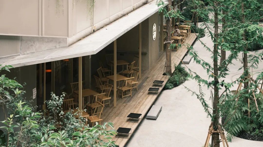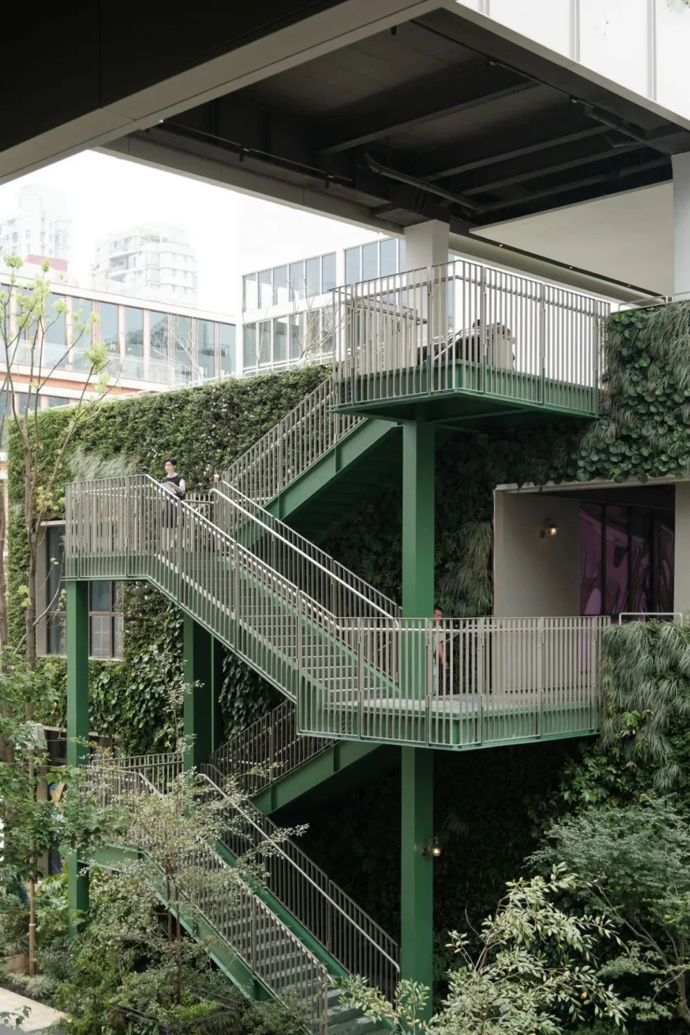 新建5栋多层建筑,打造高低错落的空间,营造出人与场域深度的「互动感」和「参与感」。这里有蓝瓶咖啡长宁首店、紧临蕨类植物的开吉茶馆、向外敞开的PIZZERIA,在周末也总是人满为患,一位难求。