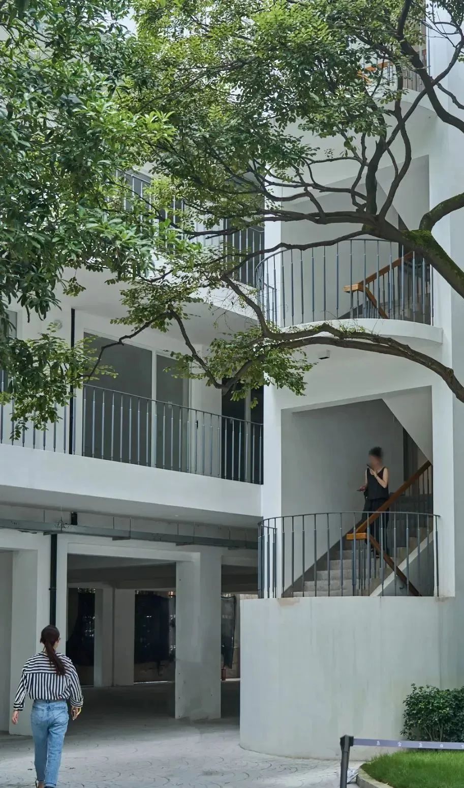 前段时间因为森山大道摄影展重新开放的何东旧居,一旁竟然新开了一片街区。草木元素遍布其间,大片绿色传递的「清凉感」无处不在。街区建筑多为纯白的现代主义风格,搭配一旁的绿意,清新的氛围扑面而来~