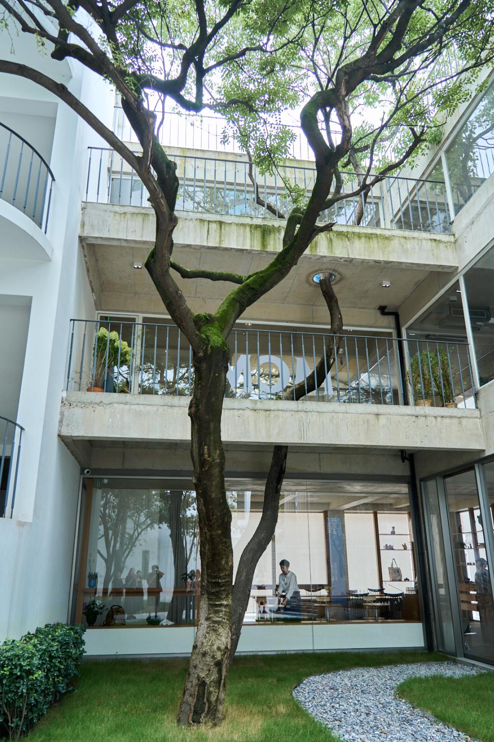 街区内现在有两家咖啡店入驻,一层是coffee spot的2.0版本、备受瞩目的「Spot Table」,二层是「Lumos」的树屋花房。一棵参天古树串起两家新店,有一种自然与建筑的奇妙共生感。身处这里,便能感到大自然的治愈能量~