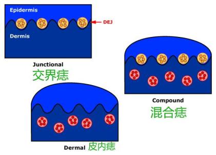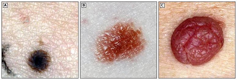 (A交界痣,B混合痣,C皮内痣,图源文献1)