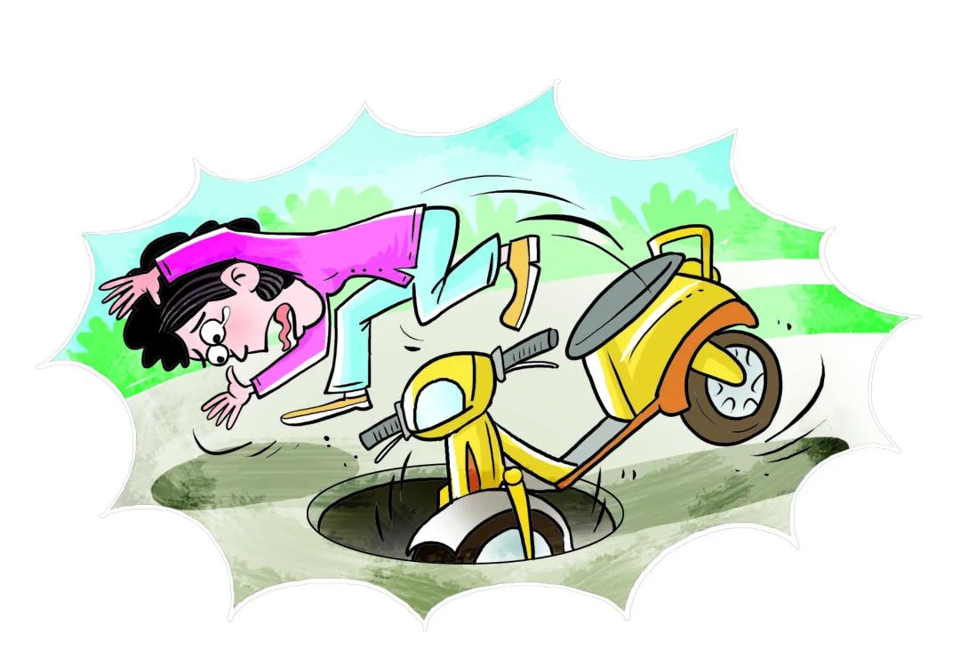 每周普法||骑电动车压上下陷的城市窨井盖导致侧翻,谁来担责?