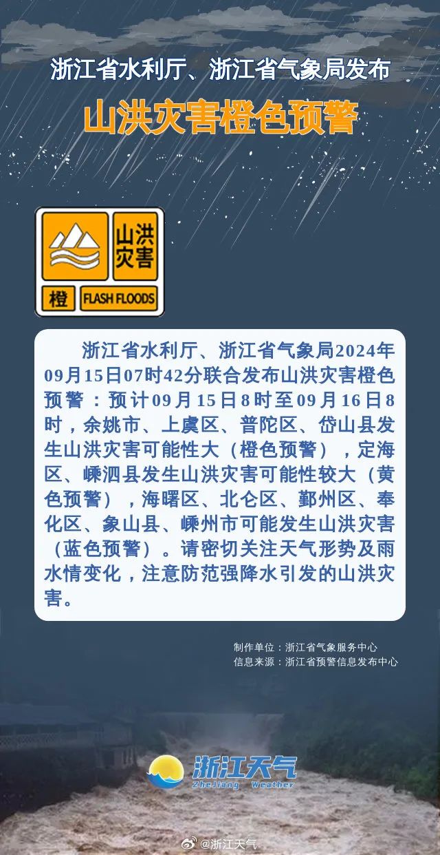 浙江省水利厅、浙江省气象局联合发布山洪灾害橙色预警