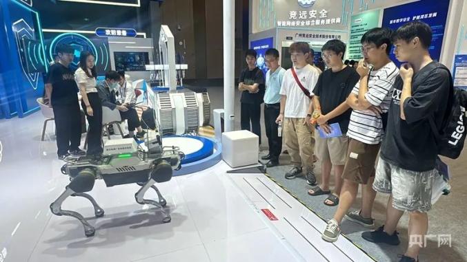 在中国南方电网展区,几位好奇的面孔被现场来回巡视的智能机器狗所吸引。“这个机器狗涉及智能识别、多机协同、数字孪生等技术,和我们所学的人工智能专业息息相关。”广东工业大学研究生杨雨航告诉记者,为深入了解业内前沿动态及企业的招聘需求,他和几位同学从广州大学城出发,乘坐“招聘班车”来到了网安周活动现场。投递简历之余,场馆展出的人工智能“黑科技”,令他们印象深刻。