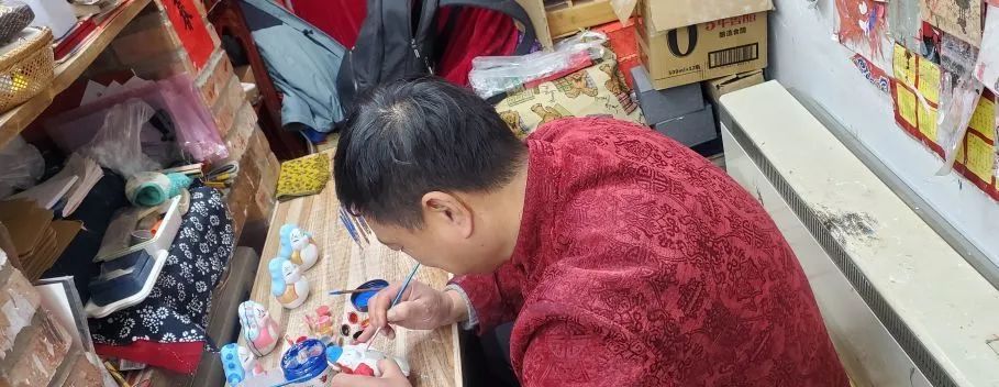 门店虽然不大,但摆满了兔儿爷的非遗作品,在这里不仅有机会能看到老师傅亲手制作兔儿爷的过程,还可以亲自上手体验一下。