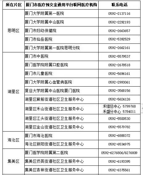 附表:厦门市医疗预交金通用平台联网医疗机构