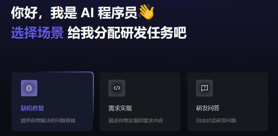 在阿里云的定义中,「AI 程序员」是能独立自主完成研发任务的 AI 智能体,可承接人类指派的软件研发生命周期中的各类任务。它目前预置了三个使用场景:缺陷修复、需求 0-1 实现、研发问答。