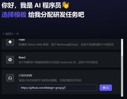 另外,我们在需求实现场景中还可以拉取已有的代码库来进行迭代升级,比如这里我们拉取了最近比较热门的一个—— 据称可极大提升 LLM 的推理能力。