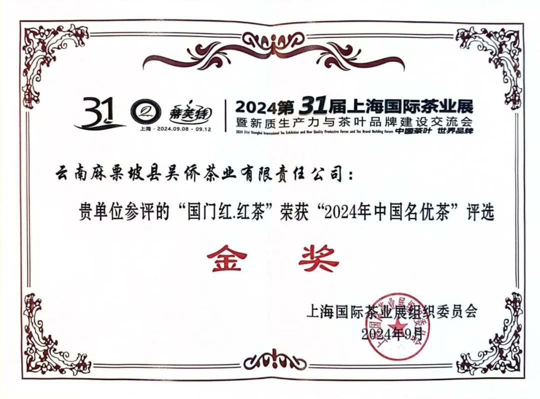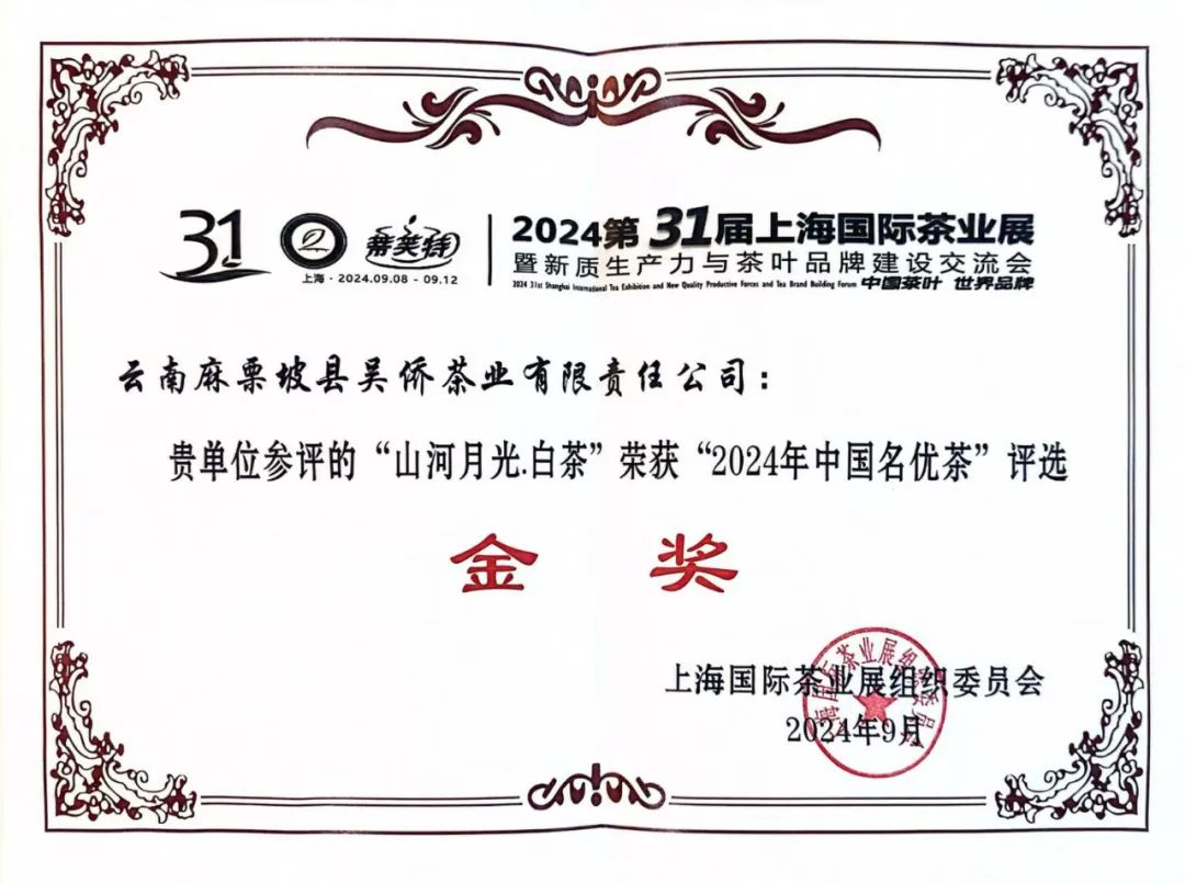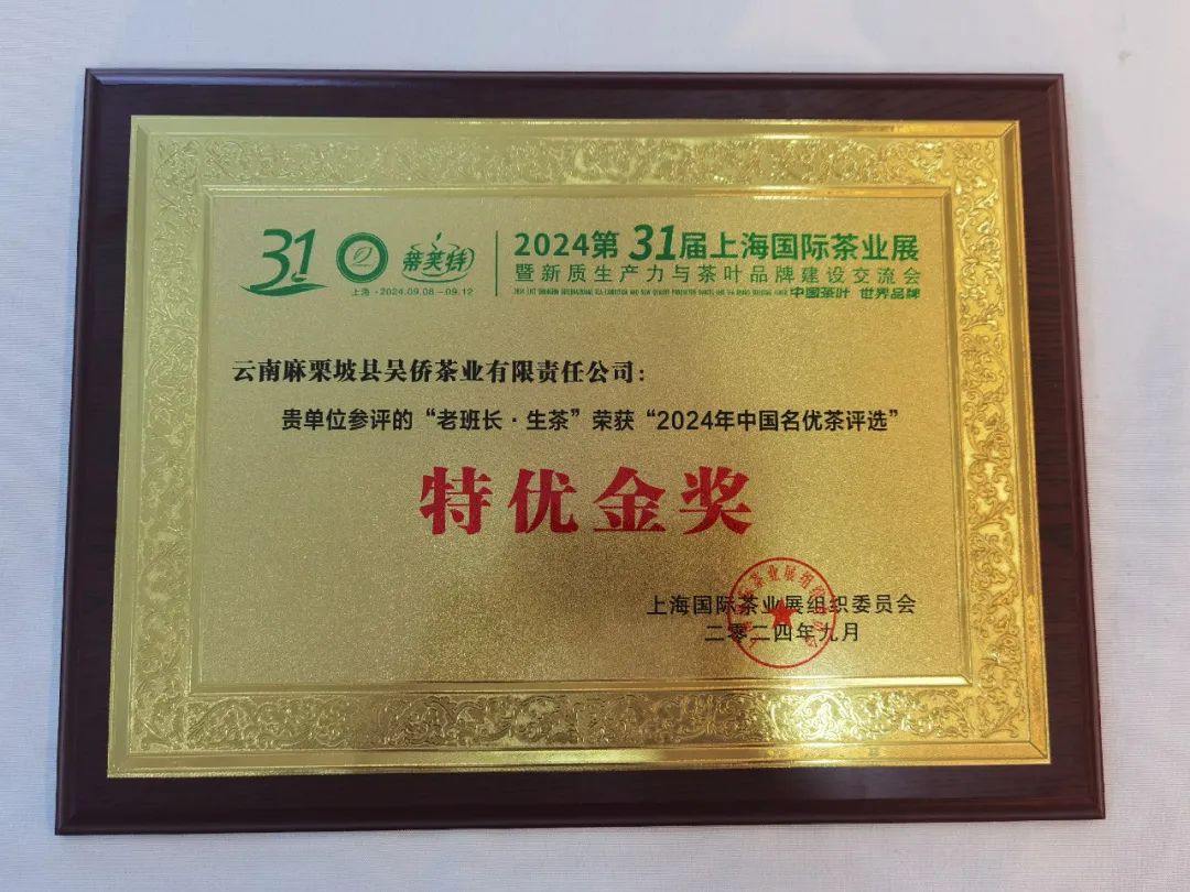 在近日闭幕的第31届上海国际茶业展暨新质生产力与茶叶品牌建设交流会上,文山麻栗坡吴侨茶业公司提供的茶叶获“特优金奖”。