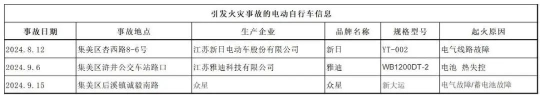 集美区近期电动自行车火灾情况曝光!事故原因及涉事品牌公布→