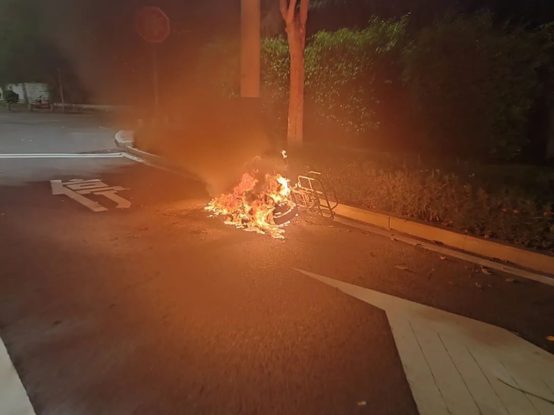 9月6日,集美区浒井公交车站路口,一辆电动自行车电池冒烟。火灾发生时电动自行车处于停放未充电状态,初步判断为电池热失控,该车辆品牌为“雅迪”。03