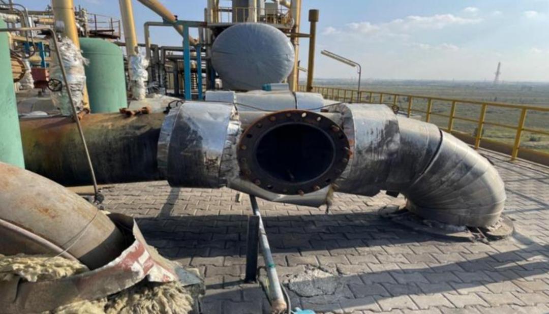 事故造成事故阀的阀盖、阀杆、阀板(共计重556kg)向北高速抛出,第一落点水平距离89.4m,第二落点水平距离112.4m,围栏的立杆折断,毁损围栏的长度7.6m,高度1.1m。事故阀电动执行机构、手轮传动机构、龙门架散落于平台正北方向地面。阀门北侧管道的下弯头处保温层被气流冲击剥落,露出弯头管道表面。事故阀背侧(南侧)未受事故破坏。