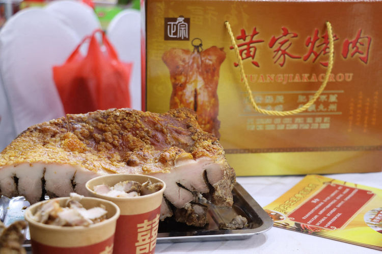 据《章丘县志》记载:黄家烤肉系济南名吃,起源于明末清初,由黄氏家族创制,距今已有近400年历史。据传,早在元朝,章丘黄家湾有一个姓黄的人在朝中做武官,因打了败仗被贬回原籍。其随从中有一蒙古人经常点燃树枝烤羊肉吃,鲜美的味道吸引了很多人。黄家因此受到启发,也经常烤肉吃,不过,因为此地世代养猪,主要是烤猪肉吃,而且是将猪肉割成块烤。到明朝末年,已发展成为用特制的炉子烤整猪,并以烤肉谋生。清朝中晚期,民族工商业渐有发展,章丘孟氏“祥”字号商业开始迅速发展,并誉满京畿内外。“孟氏商人”结交了不少豪门显贵,也把黄家烤肉这种章丘名吃带到了宫中。据说慈禧太后吃腻了御膳房制作的各种山珍海味,偶尔品尝一回“章丘黄家烤肉”,但觉此肉肥而不腻,皮酥肉嫩,别具异香,回味悠长,不禁凤颜大悦,据说还御赐给黄家一面铜牌,以资褒奖。