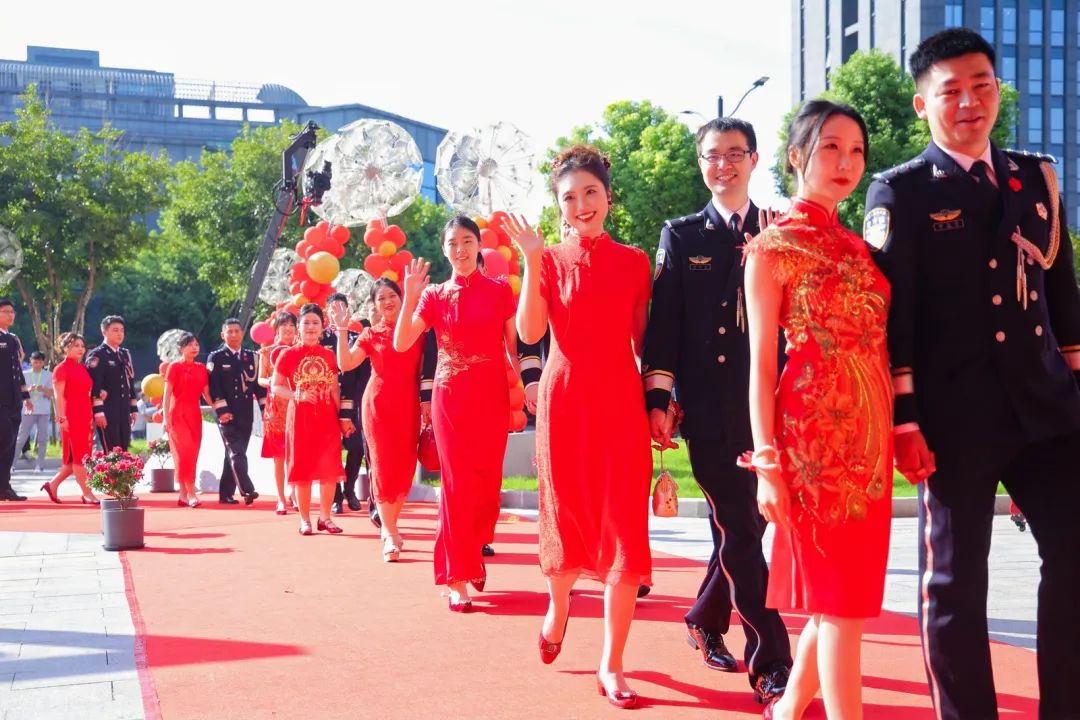 “家是最小的国,国是千万家。恰逢新中国成立75周年,今天也是很多个小家庭万众瞩目的高光时刻,我们很荣幸作为他们幸福的见证人。”全国最美家庭代表、浦锦街道社区民警顾晓芬看着一对对幸福的新人说道,今年是她与爱人计徐康结婚的第20年,作为一名社区民警,“忙碌”是顾晓芬的常态,而“默默无声的支持”则是其爱人计徐康爱的表达。