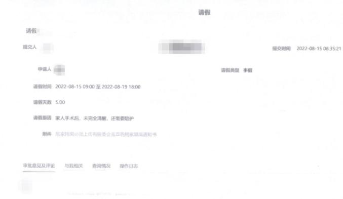 汪某于2022年8月1日至8月2日申请年假2天,请假原因为家人住院手术陪护,某公司相关人员同意批准;2022年8月3日至8月12日申请事假8天,请假原因为家人住院手术陪护,某公司相关人员同意批准。