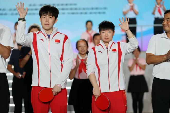 活动中,学生们向王楚钦和孙颖莎送上了精心准备的礼物,并祝福两人在未来的赛场上继续创造佳绩,为国争光。