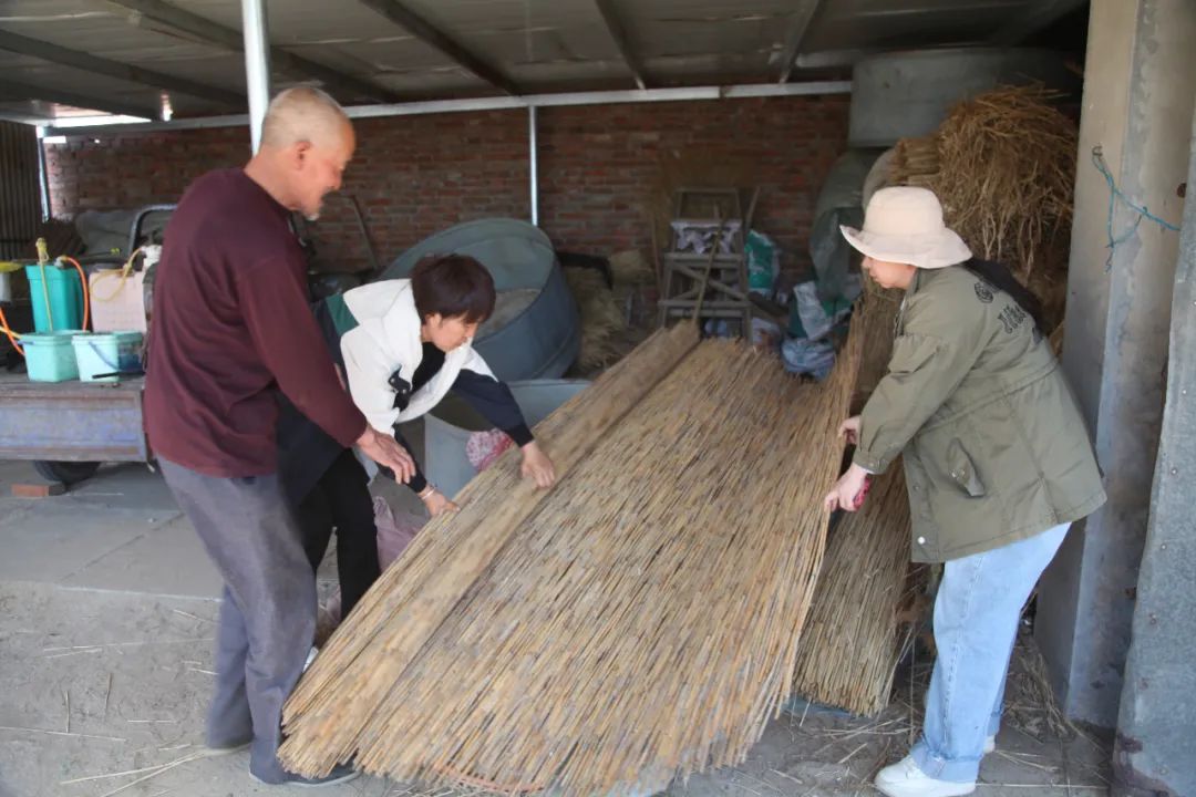 小滩南村村民赵贺功介绍打苇帘技艺。