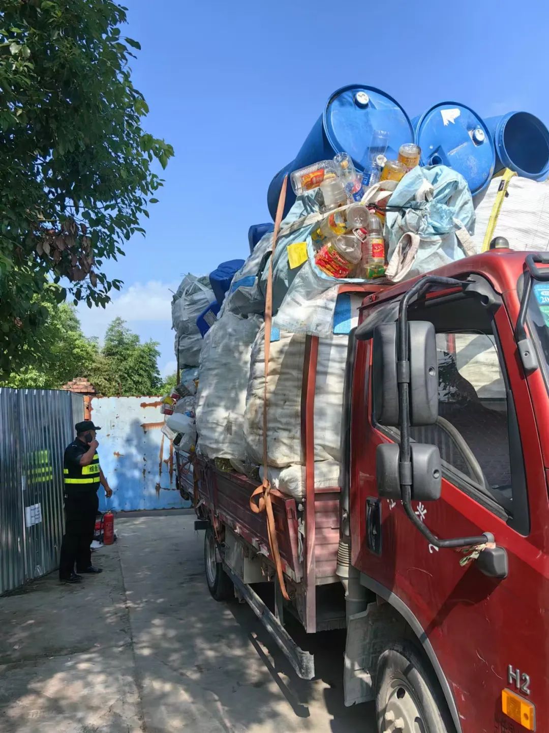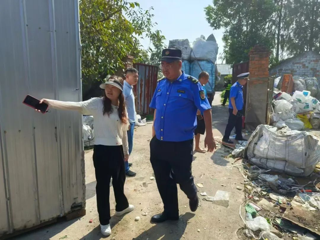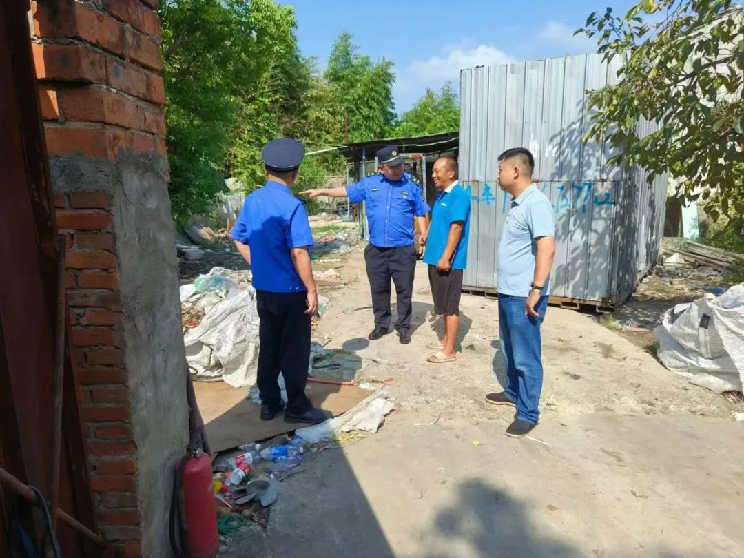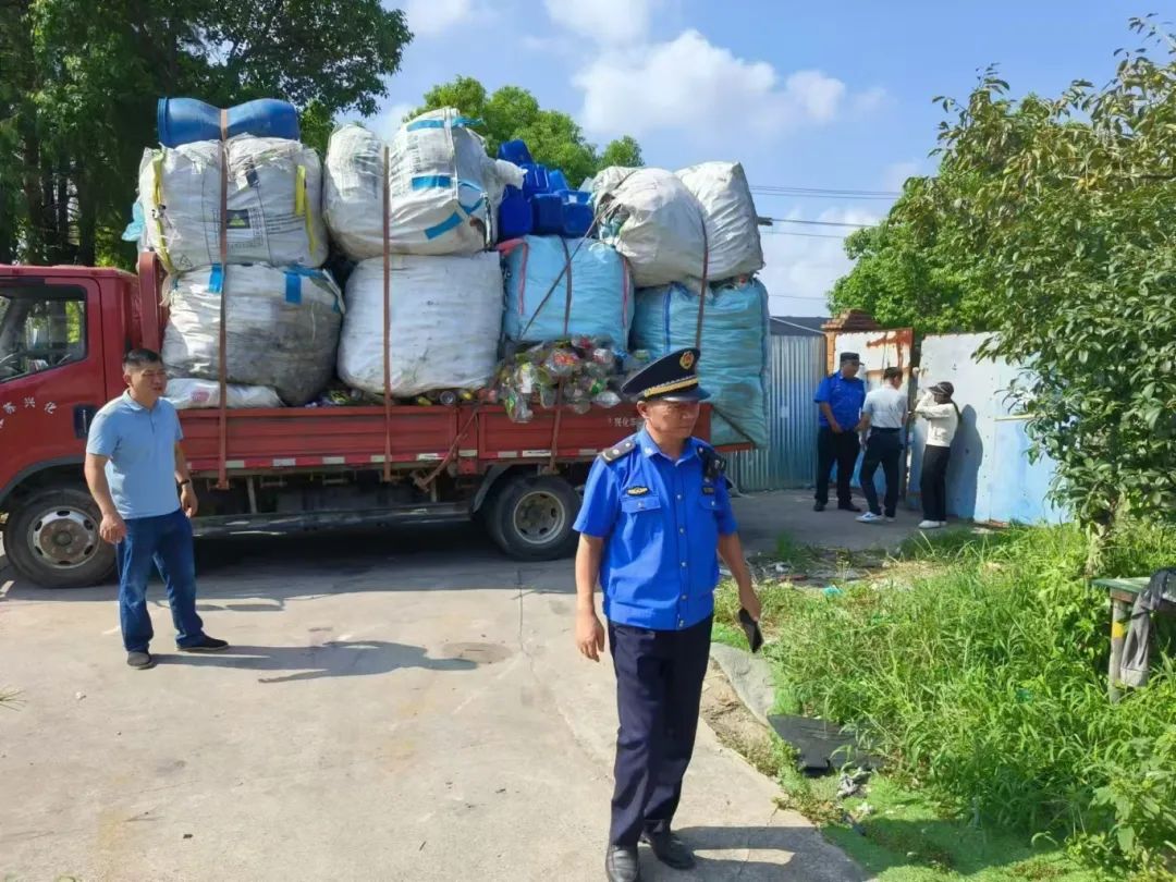 前期,城建中心、公安、市场监管、消防、城管等多部门联合对兴旺村内租用农民宅基地开展废品回收的租户进行集中整治。执法人员现场发现,兴旺村909号、880号从事废品回收的宅基地房周边场地上都堆放着瓶罐铁器、废纸箱等废旧物品,露天堆放不遮蔽,环境脏乱,严重影响市容整洁。房内还发现不少易燃物品,这些安全隐患威胁周边村民的生命财产安全。针对这样情况,要求其进行整改,做到垃圾不落地,并且限期搬离。