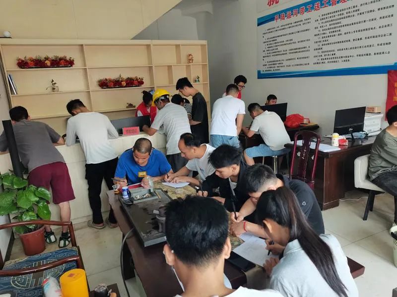 2024年5月7日,灵山县平陆运河就业服务站组织求职应聘自卸车司机、小工的18名求职者到灵山县平陆运河招工服务点登记求职信息。黄振杰 摄