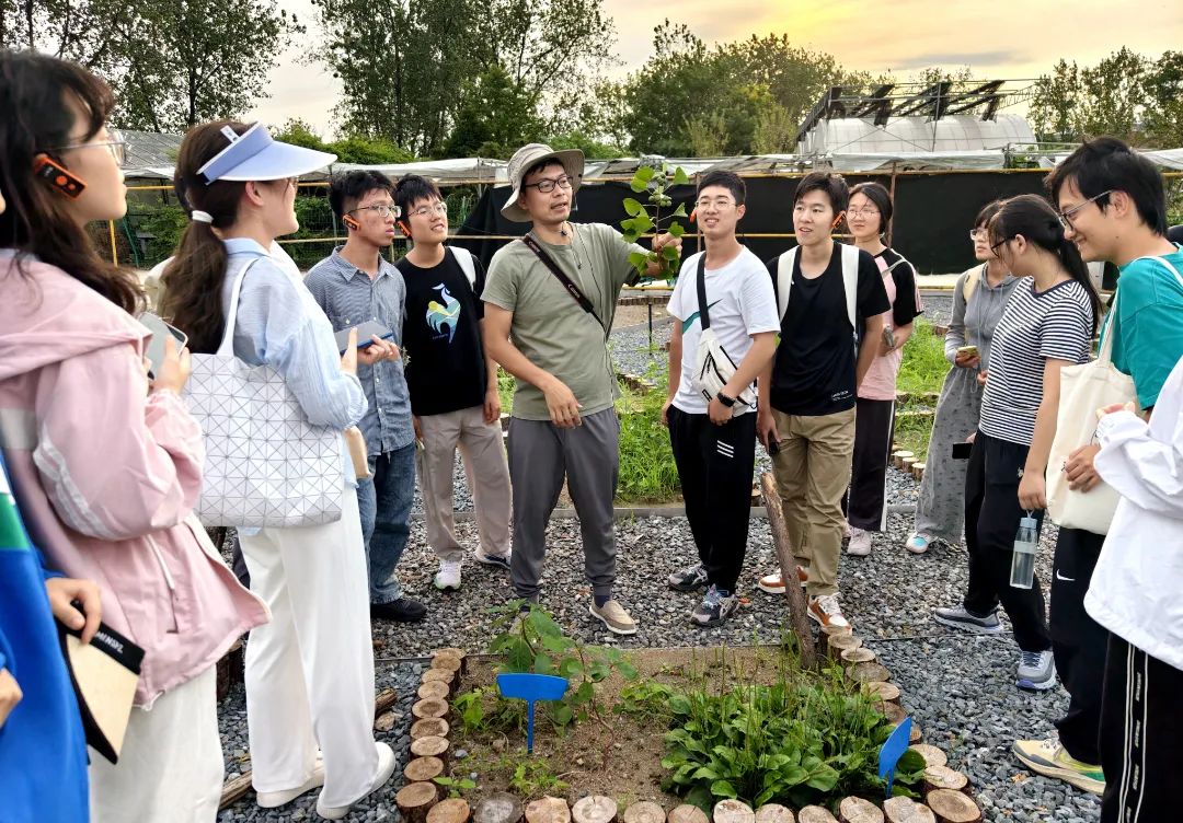 百科园位于大田的一角,这里种植着两百余种植物,其中不乏珍稀濒危植物。“罗汉松、美人蕉、萱草、薏苡、三叶木通、长萼瞿麦、芙蓉葵、浙江叶下珠、紫薇、醉鱼草、羽裂毡毛马兰……”生命科学学院副教授李攀介绍起来,如数家珍。这片园子是他为主讲的《植物学》课程精心打造的实践园地和科普基地,同学们在此可以对植物类群的分类与演化开展系统认知。李老师结合对植物及其生境的观察,分享着植物科学研究和传播方面的宝贵经验与研究成果,帮助同学们从形态学、解剖学、细胞学等不同角度感受植物多样性,了解并参与珍稀濒危植物的保护和繁育。