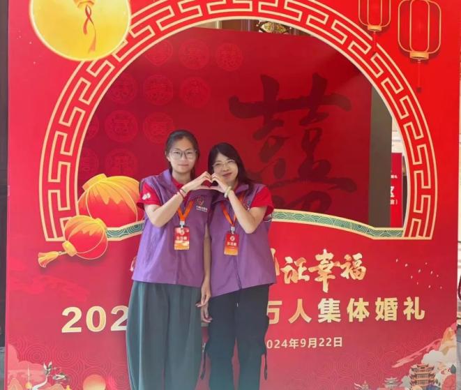 很多置身婚礼现场的年轻人同样感受到了婚育新风。来自中华女子学院的大二学生周雨晨告诉记者,能够成为万人婚礼的志愿者倍感荣幸。在这次活动中,她承担了前期的多项重要任务,包括分发礼服、引导新人进行彩排以及新人代表给金婚老人献花等流程。她深切地感受到了婚礼的庄重与浪漫,也体会到万人婚礼与传统婚礼的显著区别。在她看来,从恋爱到婚姻,都应该是一场“始于爱”的双向奔赴,既要情投意合也要相互尊重。而这场万人婚礼向年轻人传递出婚姻的本质,营造了相信爱情、坚守婚姻和家庭价值的浓厚氛围,尤其是金婚夫妇为新人们送祝福,更是树立了积极向上的婚恋示范。