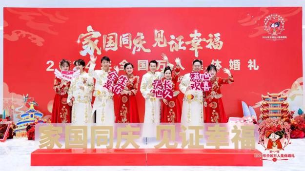 “在喜迎新中国75周年华诞之际,我们和全国万名新人一起参加了这场集体婚礼,祖国母亲见证了我们的幸福时刻。我们将互敬互爱、携手并进,经营好自己的家庭生活,以‘小家’和睦促‘大家’和谐。”新人李政峰、王晓雨夫妇说。