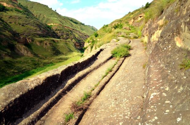 石道坡古道,是汉唐以来丝绸之路萧关古道的重要组成部分之一,是庆阳北石窟寺附近遗存下来的一段千年古道。是丝绸之路联合申遗项目中唯一一段道路遗存,古代约500华里,现在仅剩230米、车辙印长7.5米。是我国已知的丝绸之路古道保存最长、最完整的一段。千年前,这条古道上商贾云集,驼铃阵阵,路过或者留宿的达官显贵平民百姓肯定都要到北石窟寺焚香拜佛,祈求一路顺风,这也许就是北石窟寺能经历千年香火鼎盛,保存这么好的原因,因此北石窟寺也被称为关陇丝路第一驿。