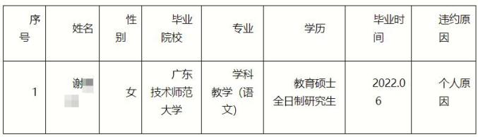 潮州市潮安区8月6日,潮州市潮安区教育局发布《广东省公费定向培养粤东粤西粤北地区中小学教师(潮安定向)违约名单公布》,文中称: