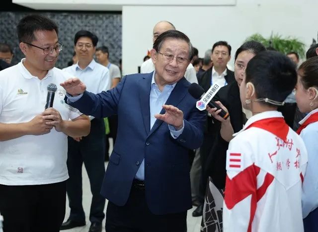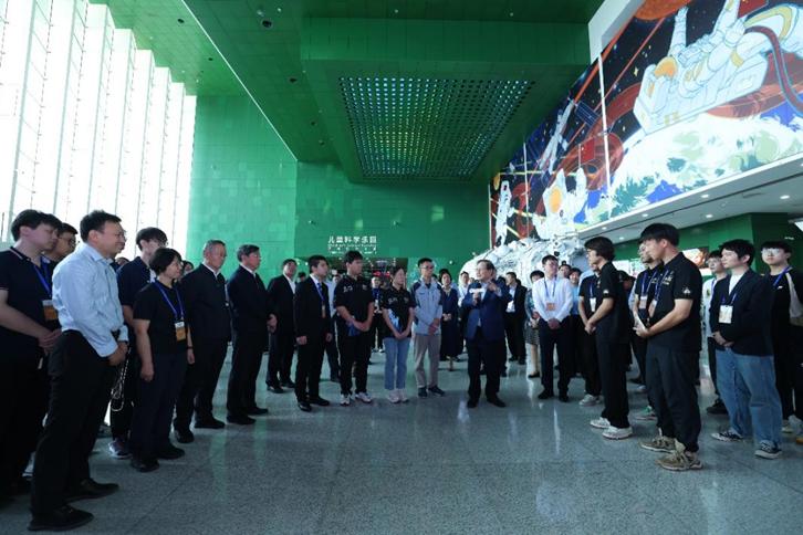 在中国科技馆“科学家与青少年共筑未来”活动现场,万钢主席与青少年交流“建立一座模拟外星科考站”中太阳能电池板的工作问题,并勉励孩子们将来投身科技事业。活动中,与会嘉宾参观了“协力共筑强国梦——全国科普日活动开展情况”、“新兴科技助发展——新质生产力科普展”、“文明薪火永传承——中轴线上的古代科技”和“青春报国正当时——青年创新实践作品展”。万钢等领导同志与参加活动的大学生和青年科技工作者深入互动交流,了解科技创新的过程,鼓励大家早日把科技成果推向应用,实现产业化。