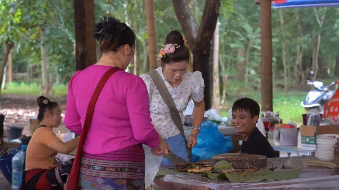 勐腊县勐腊镇曼龙代村委会曼龙勒村民小组村民依务叫说:“我们几个伙伴一起卖牛烂烀,每人每个月能分到2000元左右,国庆节、春节收入会比平常更多一些。”