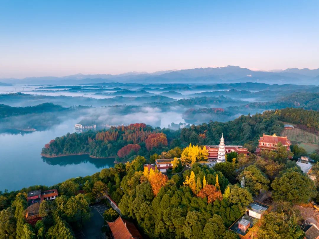 千亩水域的白塔湖万顷碧波,文井江、味江、西河等180余条河流滋润出美田弥望、茂林修竹的景象,描绘着“水旱从人,不知饥谨”的美好画卷。