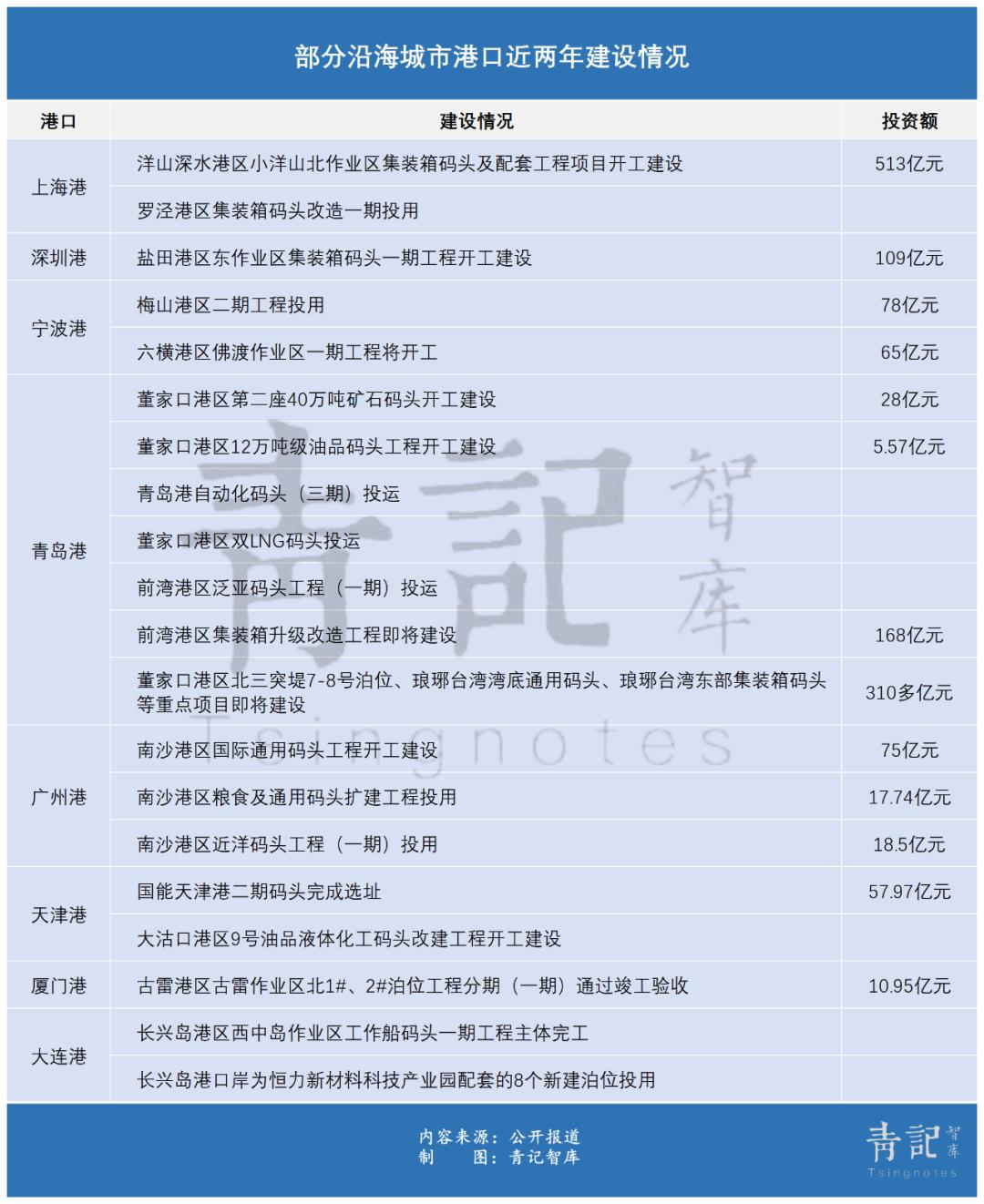 不光宁波和青岛,根据公开报道,上海港、广州港、深圳港、天津港、大连港等一批码头项目都在建设中。