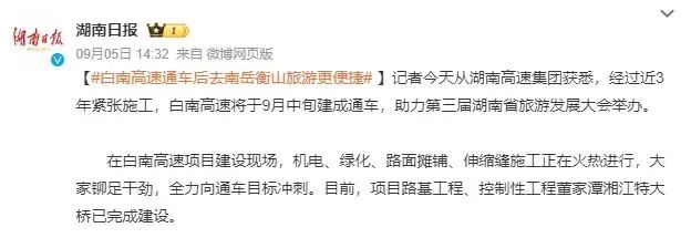 就在前不久,白南高速公路建成通车并开始试运行!以后去湖南逛吃可就更方便了~