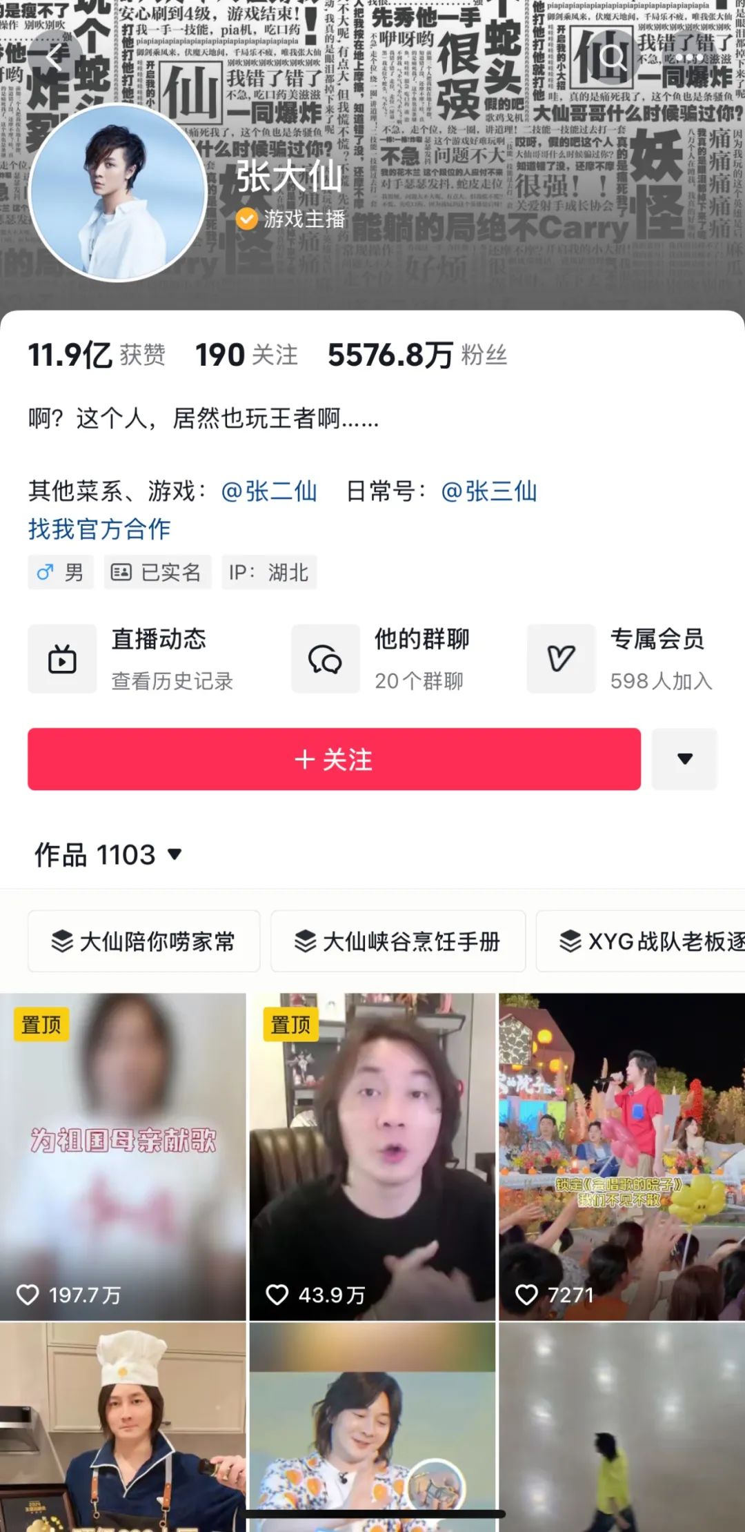 张大仙个人抖音主页,图/抖音App