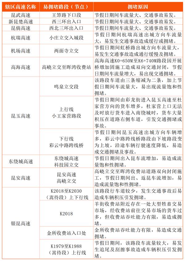 昆明周边道路易拥堵路段