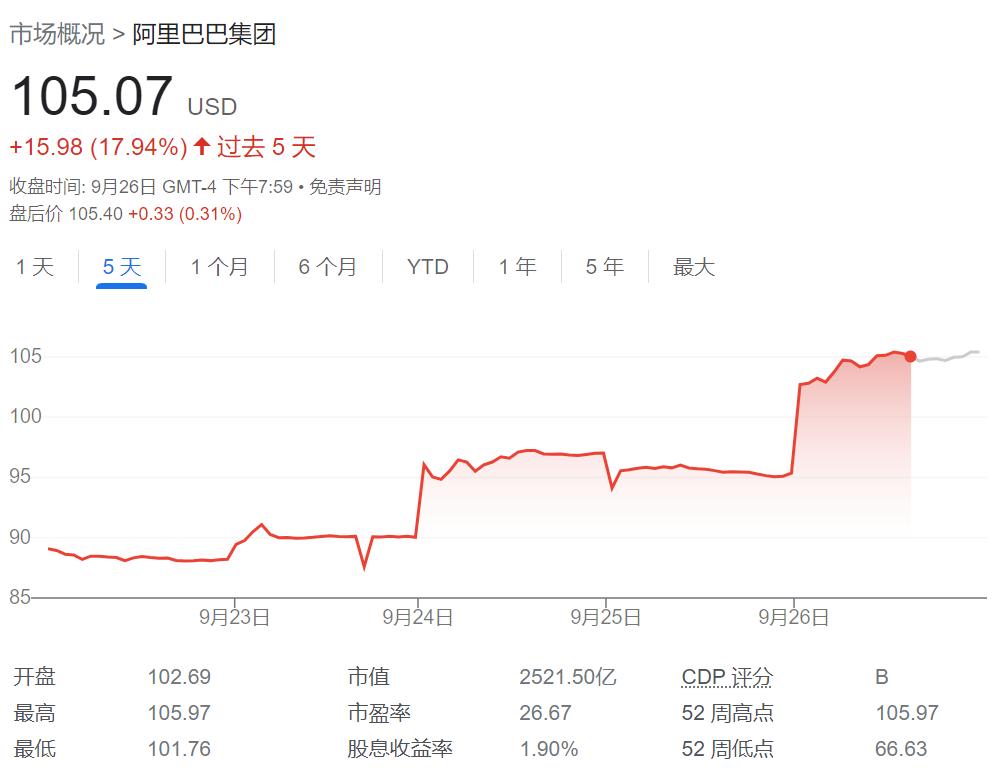 本周截止前日下午,iShares MSCI中国ETF上涨了18%,阿里巴巴、百度和京东的股价分别上涨了17.94%、17.72%和31.77%。