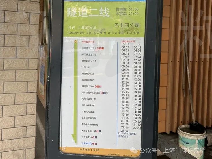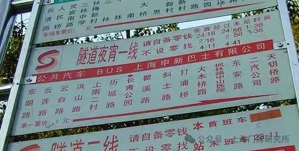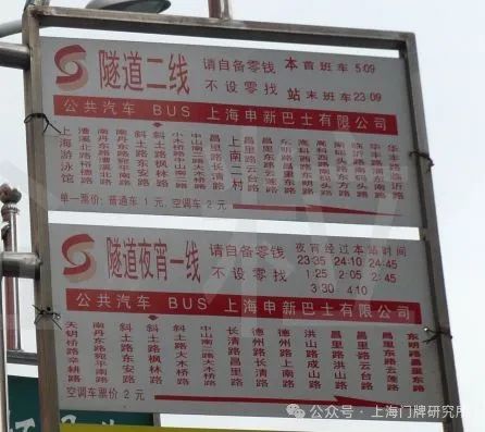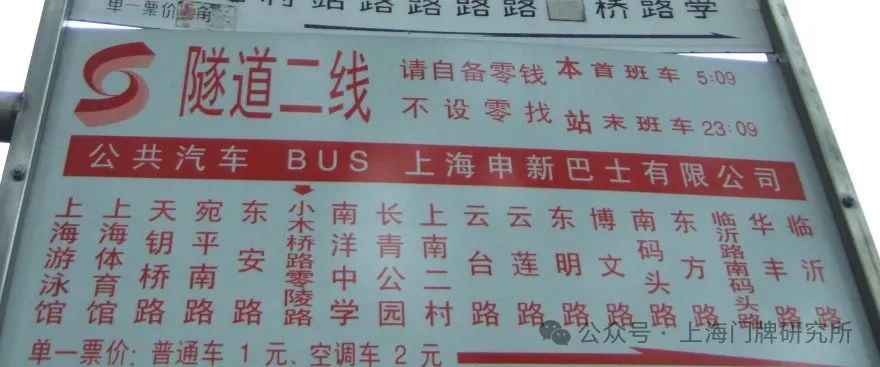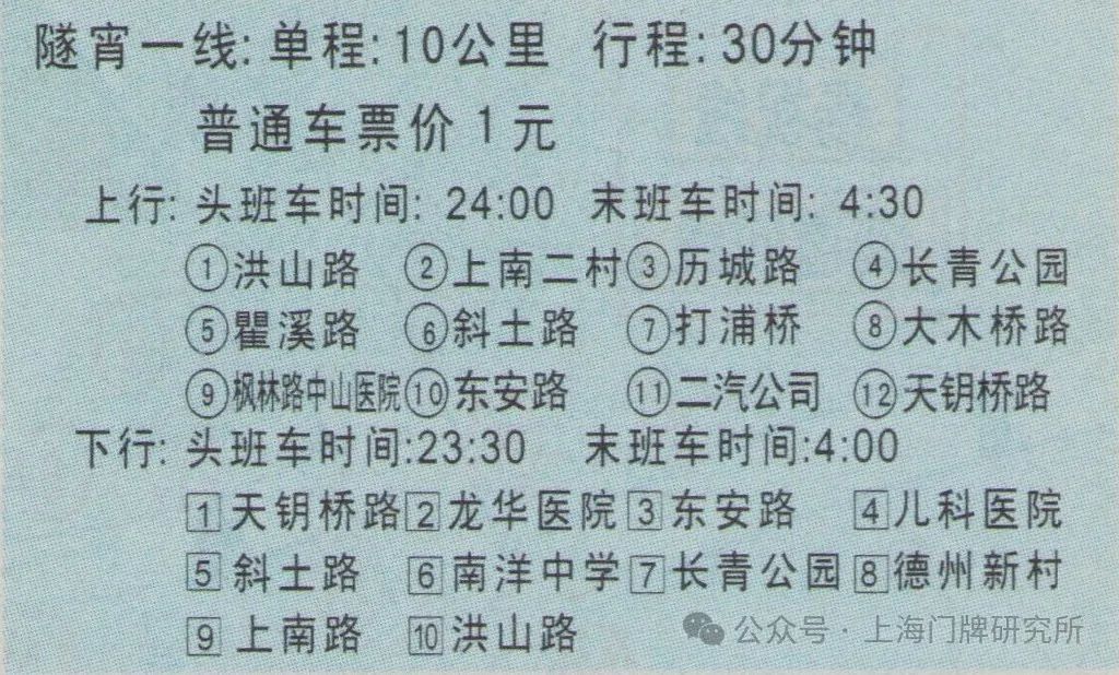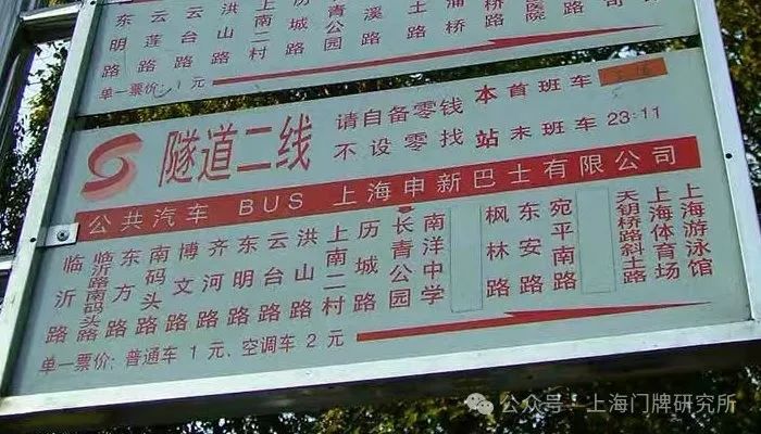 隧道夜宵一线站牌(��李凯,2008)●1991年6月28日,上海市公交总公司第二汽车公司开辟隧道夜宵一线公共汽车线路,自浦西枫林路经打浦路隧道抵达浦东洪山路。通用隧道专线月票,全程8.11公里。隧道夜宵一线的开辟填补了浦东上南、德州新村等地与浦西打浦桥、枫林路等地隧道夜宵公共交通的空白。