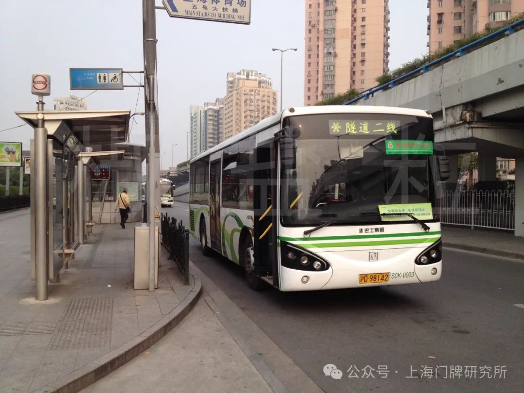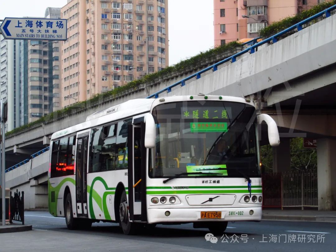 1988年9月28日,上海市公共交通公司第一分公司(由汽车二场、四场、电车三场合并成立)开辟隧道二线公共汽车早晚高峰线,自浦西枫林路经打浦路隧道至浦东长青公园,线路走向:自枫林路(原402路终点站)起,经斜土路、大木桥路、中山南二路、中山南一路、打浦路隧道、耀华路、上南路、昌里路长青公园止;回程自昌里路起,经长青路、打浦路隧道、中山南一路、中山南二路、茶陵路、零陵路,至枫林路止。全程6.2公里。实行单一票价一角五分,通用隧道专线月票。