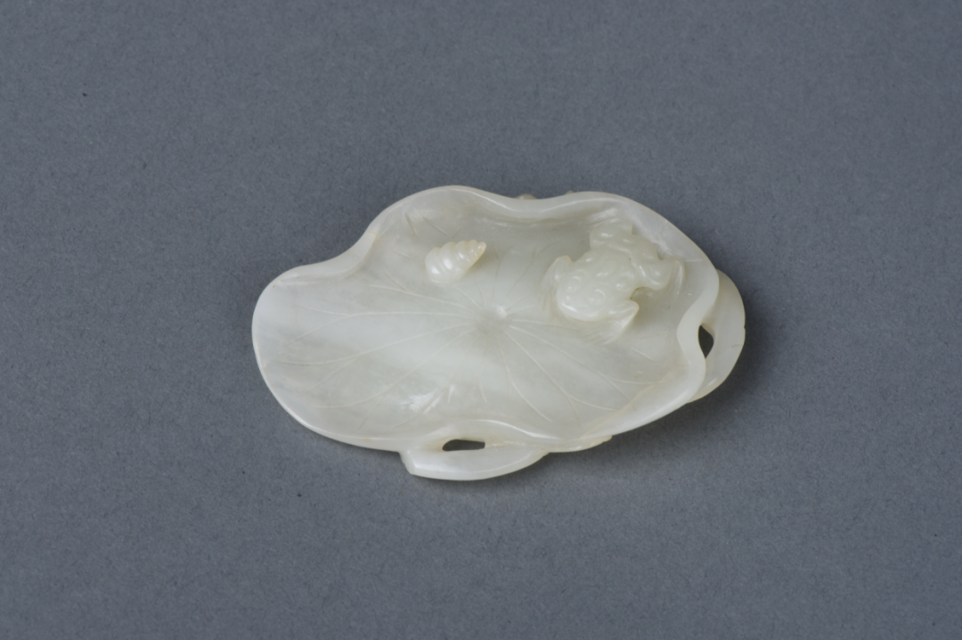 清雕荷叶青蛙玉盘
