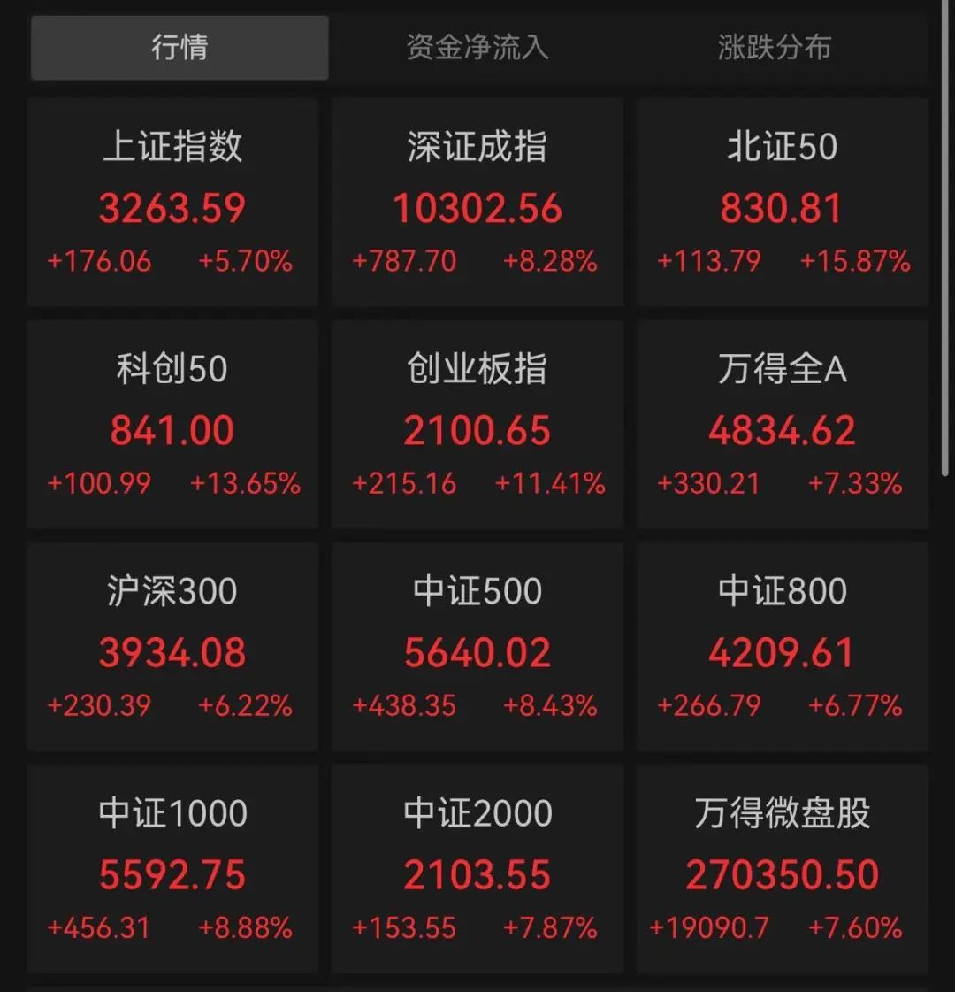 根据Wind数据,短短几天A股总市值从74.98万亿一下跃升到84.86万亿,相当于市值增加了大约10万亿。如果平均分摊到每位股民头上,每个人差不多赚了4.7万。
