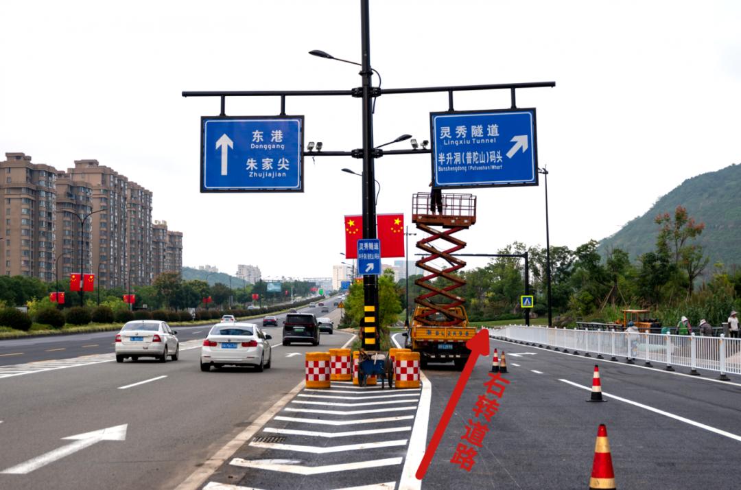 该配套道路通车后,将进一步分流东西快速路车流,减缓海天大道(普陀段)交通压力。同时,经灵秀隧道后前往普陀城区、半升洞客运中心更加方便。目前半升洞客运中心已开通前往普陀山、东极、嵊山、枸杞等多个热门航线,岛际交通循环更加畅通、快捷。