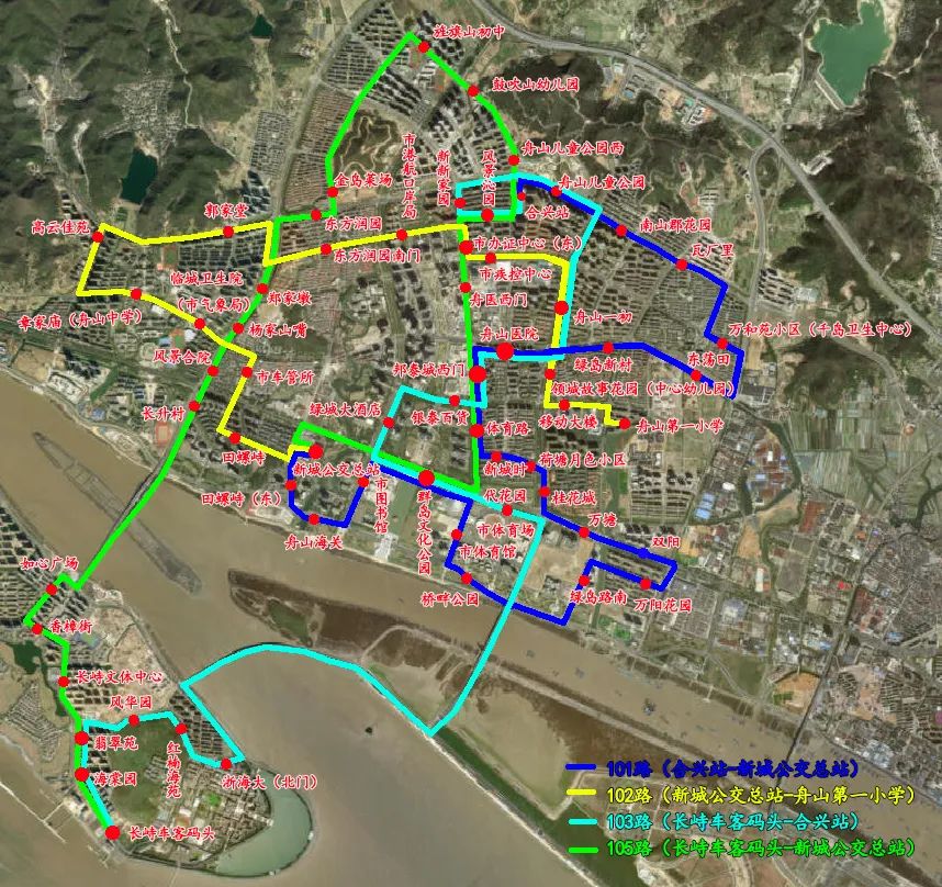 站点设置:长峙车客码头-海棠园-翡翠苑-风华园-红楠海苑-浙海大(北门)-市体育场-群岛文化公园-绿城大酒店-银泰百货-邦泰城西门-舟山医院-舟山一初-舟山儿童公园-新新家园-风景沁园-怡岛路-合兴站