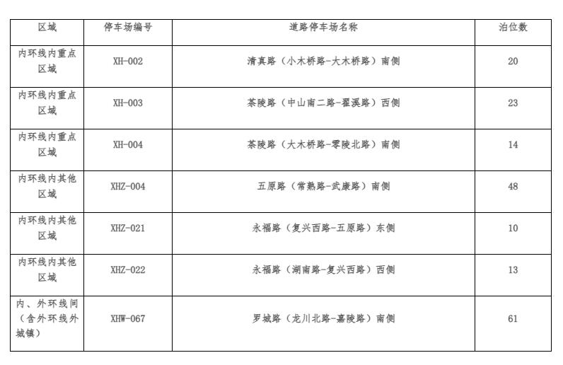 根据市、区公安交警部门核定,本次新增的7处智慧道路停车场具体设置信息如下表: