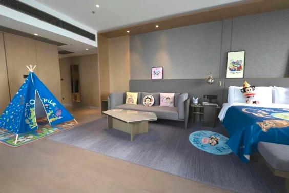 各种主题亲子房可选择,哆啦A梦、小黄人.....满屋的卡通主题装饰成为大小朋友的“心头爱”。灯饰、床单、墙照、杯盏、地毯等都是可爱卡通风。