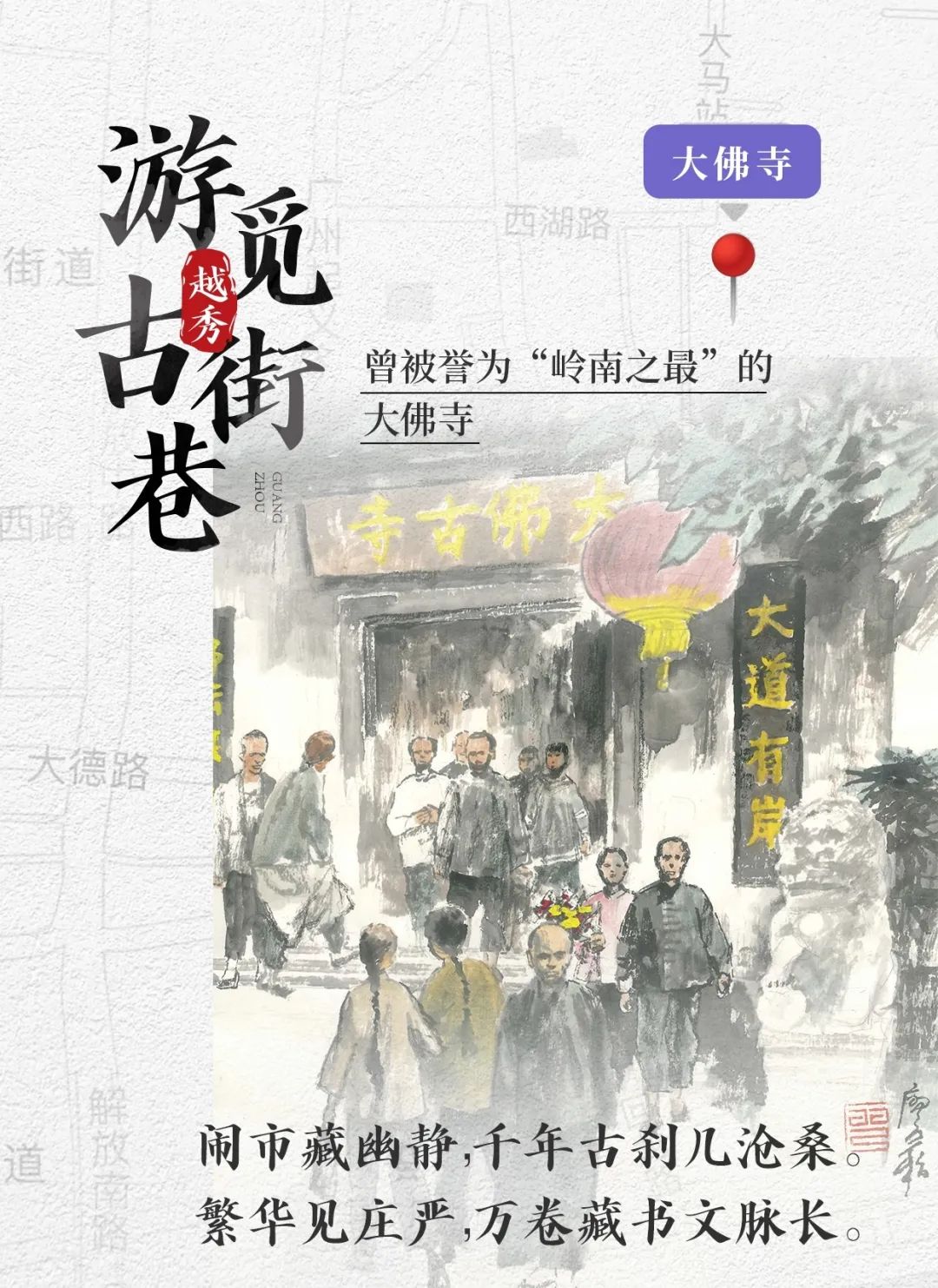 繁华的北京路上,一边是现代的城市高楼,一边是古朴庄严的佛寺建筑。热闹与宁静,现代与传统,商业和人文,各自独立又交汇融合,形成一道独特的景观,展现着广州城包容与开放的魅力。