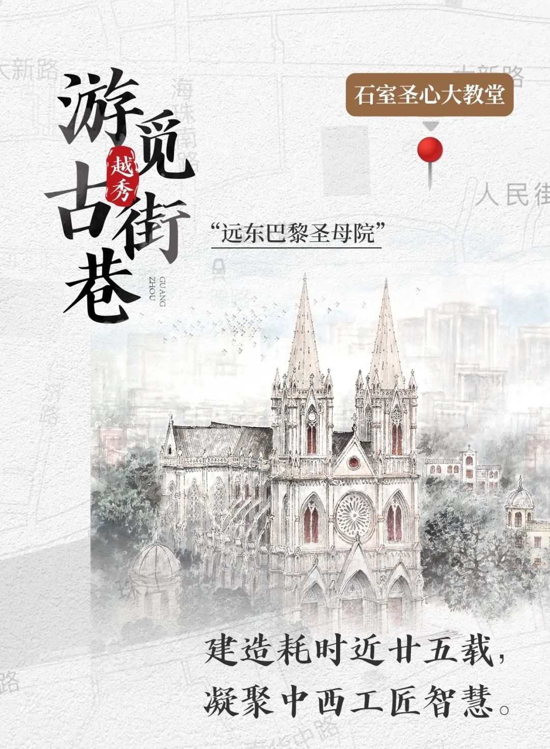 一百多年前,一名法国传教士相中了广州卖麻街的土地,计划建造一座圣心大教堂。于是后来,两位法国建筑师借鉴巴黎圣母院的哥特式精华开始动工建造。他们最初装了一组广州最早的报时大钟,但因为经常报错时,被老广说“石室钟——大声夹无准”。由于法国设计师不通华语且不懂中国式手工劳作,他们聘请中国石匠蔡孝总管建造工程。建造耗时近25年的石室圣心大教堂最终在1888年落成。当时,一德路中间的劳动路也叫圣心路。