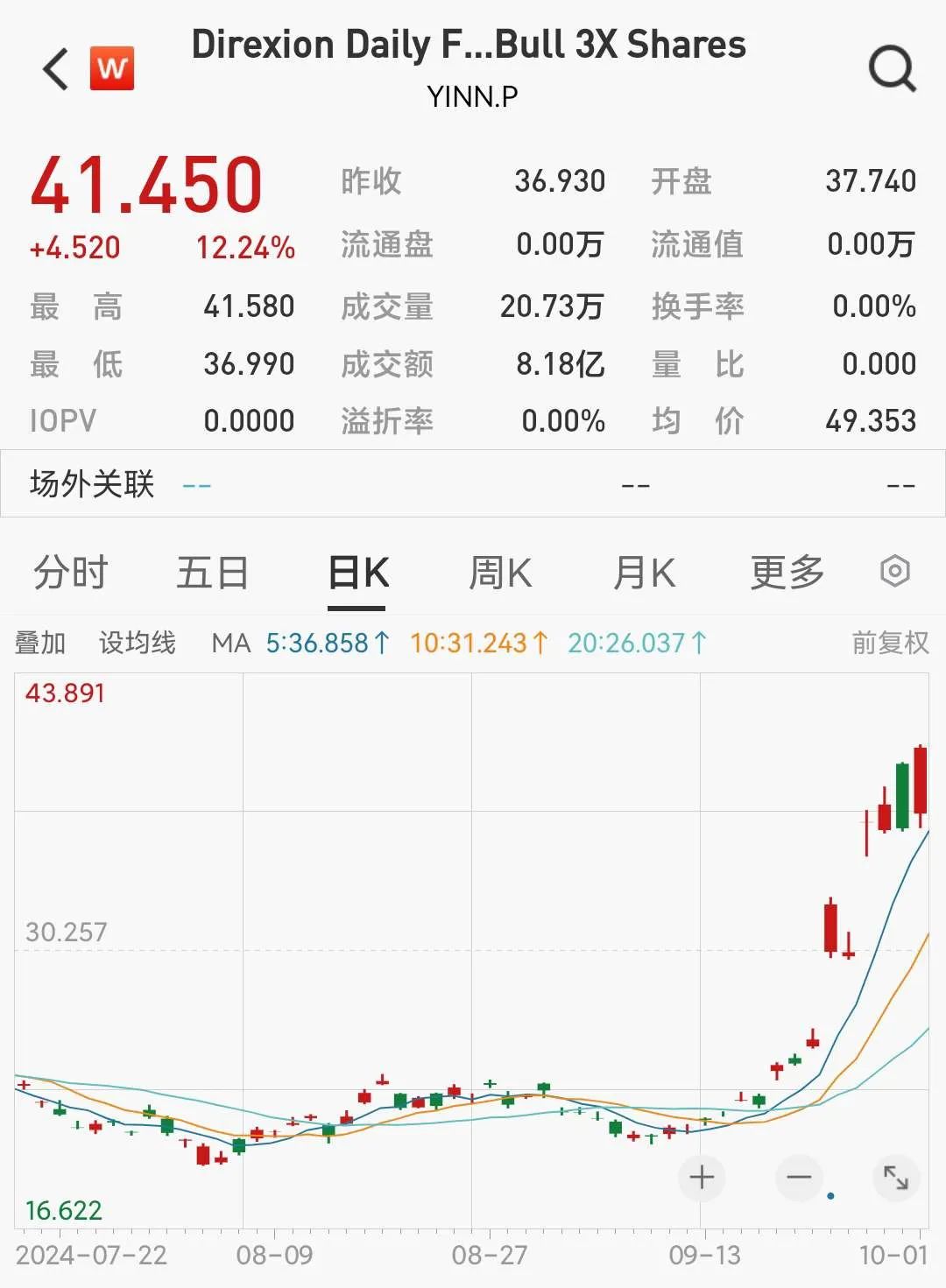 10月2日,热门中概股美股盘前普涨,老虎证券涨超20%,贝壳上涨15%,小鹏汽车涨超10%,理想汽车涨超9%,蔚来汽车涨超7%,阿里巴巴涨近5%。全球投资者准备重返中国。隔夜(10月1日)美股全线杀跌,并对今早亚太市场造成冲击,但这并未影响到中国资产的走势。三倍做多FTSE中国ETF上涨超12%,纳斯达克中国金龙指数涨超5%。