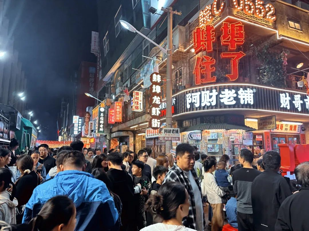 假期正是走亲访友、阖家团圆的好时机,餐饮业也顺势成为消费市场表现亮眼的主力。10月3日晚间6点半,在阿财老铺美食街,人流密集,摩肩接踵,饭店门前排队等位的人也已经聚集了不少。